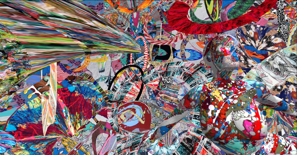 Ce n’est pas une peinture is an immersive environment within the 3D online virtual world of Second Life. Imagined in the physical world to be a city block and 50 stories tall, the space is inspired by the luscious exuberance and sumptuousness of the neo-Baroque and Populence styles of Beatriz Milhazes, Takashi Murakami, Polly Apfelbaum and Gajin Fujita. Created to be interactive within Second Life, Avatars engage with the installation by floating through it in an endless meditative decent becoming immersed in a hypnotic kaleidoscope of color, pattern and design. This film is documentation of the installation as seen from an Avatars perspective. Filmed by Nina Camplin, UK. |